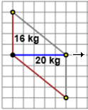| Veronica e Luigi (rappresentati dai pallini gialli) tirano, usando due diverse funi, una barca (rappresentata dal pallino nero). Veronica esercita una forza di 16 kg. Quanto è intensa la forza esercitata complessivamente dai due ragazzi? | ![]() |