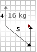 | Il vettore somma (vedi figura a lato) ha la punta della freccia sul punto in cui si arriva dalla punta del vettore-Luigi andando avanti secondo il vettore-Veronica: 4 in alto. Si ottiene un vettore orizzontale lungo 5 quadretti. Il vettore-Veronica è lungo 4 quadretti e ha intensità 16 kg. Quindi 1 quadretto corrisponde a 4 kg. Il vettore somma rappresenta quindi una forza di 4·5 = 20 kg. | ![]() |