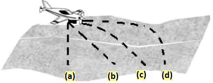 Da un aeroplano in volo radente su una spiaggia viene sganciata una cassa. Quale delle tracce rappresentate in figura illustra meglio la traiettoria descritta dalla cassa?