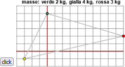 script genera la disposizione di tre masse e la visualizzazione del loro valore (in chilogrammi). L'unità di misura delle lunghezze è il metro. Determina la posizione del centro di massa. Controlla la risposta premendo