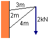 | Due aste incernierate tra loro per un estremo e fissate a una parete verticale, nel modo raffigurato a fianco, sorreggono un carico di 2000 Newton. Quanto vale la tensione a cui è sottoposta l'asta superiore? (A) 1 kN (B) 2 kN (C) 3 kN (D) 4 kN (E) 6 kN | ![]() |