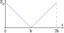 | In questo caso (vedi) la somma di energia cinetica ed energia potenziale si conserva. Sia s la distanza percorsa ed Ec l'energia cinetica. L'energia potenziale aumenta fino a che s = h, linearmente, in proporzione ad s, poi diminuisce, linearmente. L'energia cinetica in funzione di s ha quindi il grafico rappresentato a destra: un segmento di ascissa da 0 ad h che scende seguito dal segmento simmetrico rispetto alla retta verticale di ascissa h. | ![]() |