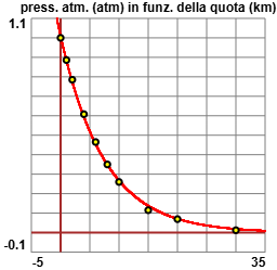 geografica, della pressione in atmosfere in corripondenza dell'altitudine in km