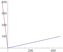![]() | La figura è stata tracciata con questo script. Cosa potremmo ottenere col software online WolframAlpha (vedi): parametric plot (45*t, 10*t), parametric plot (−5*t, 40*t), t=0..10 |