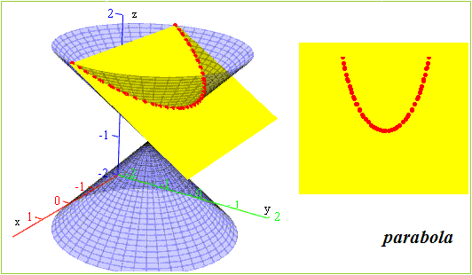 il piano taglia il cono secondo una parabola (figura superiore al centro).