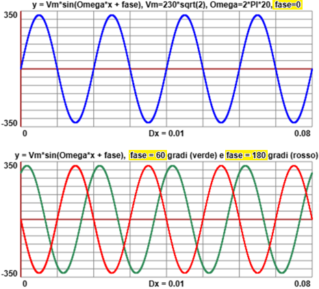 significa che viene fornita corrente con tensione che varia come una sinusoide