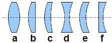 al centro, in biconcave, piano concave e menisco divergenti. La distanza tra il punto F e il centro