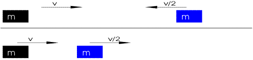 Sotto è illustrato l'urto elastico centrale tra due masse uguali, la seconda inzialmente ferma.