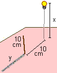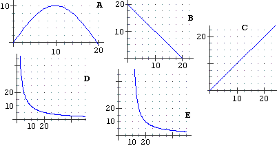| Sposto verticalmente una lampadina in modo da modificare l'ombra di una matita lunga 10 cm posta in piedi sul tavolo, a una distanza di 10 cm dalla retta lungo cui sposto la lampadina. Qual è il grafico della lunghezza in centimetri dell'ombra (y) in funzione della distanza in centimetri della lampadina dal tavolo (x)? |