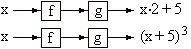 Ciascuno dei due schemi a fianco rappresenta la composizione di due funzioni f e g.