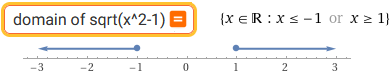K) l'insieme dei numeri x tali che 0 ≤ x2-1, ossia tali che 1 ≤ x2; questa relazione è vera se 1 ≤ x o se x ≤ -1; il dominio è quindi costituito dagli intervalli (-∞, -1] e [1, ∞).