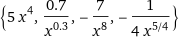 5 x4 0.7 / x0.3 −7 / x8 −1 / (4 x5/4 )