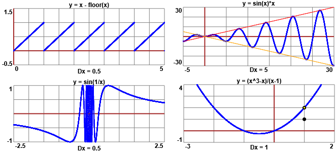 (1) Se, ad es., F è una funzione periodica non costante di periodo T, k è un qualunque numero e x(n) è la successione (divergente a ∞) n → k+nT, allora F(x(n)) vale costantemente f(k) e quindi converge a tale valore; mentre il limite di F(x) per x → ∞ non esiste. Sopra è raffigurato il caso di F: x → x - floor(x) ("floor": funzione parte intera); se x(n)=n F(x(n))=0 [ossia F(0)=F(1)=F(2)=