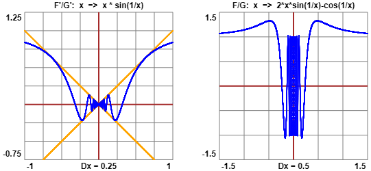 Siano F(x) = sin(1/x)·x2 e G(x) = x. Determinare F'(x) e G'(x) e studiare