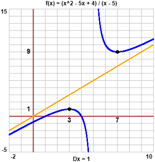 Dove x → (x2 − 5x + 4) / (x − 5) cresce e dove decresce?