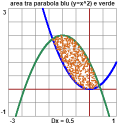 Calcola l'area delle figura rappresentata a fianco, compresa tra la parabola y = x² e la parabola, uguale, ma ruotata di 180°, avente vertice in (-1.5,2).
