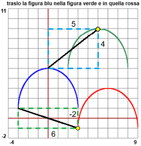 Come si vede nella figura qui a sinistra, la curva verde è stata ottenuta da quella blu traslandola di 5 a destra e di 4 in alto,