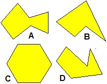 | Osserva i quattro poligoni e stabilisci quale affermazione è vera: (1) A ha lo stesso numero di angoli di C (2) D ha più angoli di ogni altra figura (3) Non ci sono poligoni con lo stesso numero di angoli (4) Ci sono due poligoni con lo stesso numero di angoli |