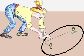 | A destra vedi come un giardiniere traccia un'aiuola usando uno spago lungo 4.90 metri fissato a pioli che distano 2.85 metri. Probabilmente avrai anche tu provato a tracciare una curva di questo tipo. È una ellisse. Apri questo file. Il computer non traccia l'ellisse con uno spago. Come fa, secondo te? | |