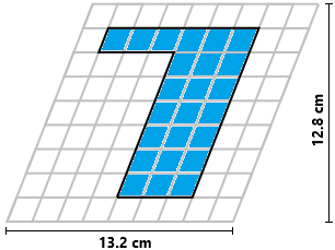 | Sapendo che il reticolato raffigurato a destra è largo 13.2 cm ed alto 12.8 cm, trova l'area della figura (a forma di "sette") disegnata in esso. | ![]() |