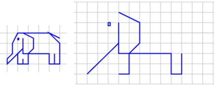 | Completa (eventualmente su un nuovo foglio di carta quadrettata) l'elefante disegnato grande in modo che abbia esattamente la stessa forma di quello disegnato piccolo. | ![]() |
