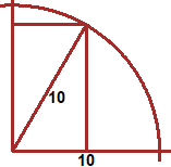 | A fianco è disegnato un quarto di cerchio di raggio lungo 10. In esso è tracciato un rettangolo con due lati sul bordo del quarto di cerchio, un vertice nel centro del cerchio e il vertice opposto sul quarto di cerchio. Sappiamo che un lato del rettangolo è lungo 5. Trova quanto è lungo il segmento indicato con "?". | ![]() |