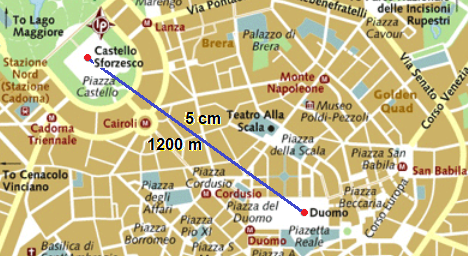 In una cartina di Milano il Castello Sforzesco e il Duomo distano circa 5 cm.