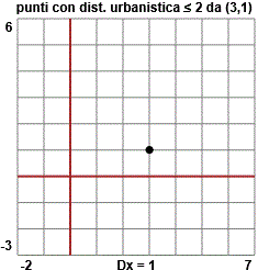| d(P,(3,1)) ≤ 2} dove d indica la distanza urbanistica.