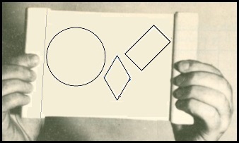 | Prendiamo una tela elastica e disegnamoci sopra, come nella figura a fianco, un cerchio, un rettangolo e un rombo con le diagonali una orizzontale e l'altra verticale. Se stiro la tela il cerchio, il rettangolo e il rombo rimangono tali o cambiano aspetto e, eventualmente, che cosa diventano? | ![]() |