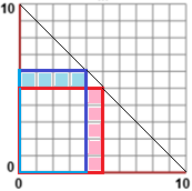 Ovvero, qual è il rettangolo (figura gialla a destra) di area massima che abbia due lati le cui lunghezze abbiano somma di 10 cm? Provate a rispondere osservando le due figure (che cosa rappresenta quella a destra?). Poi giustificate questa risposta. |