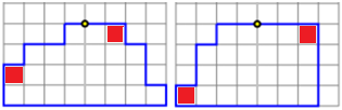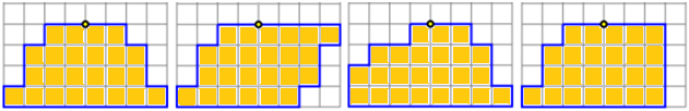 Ci sono 24 oggetti cubici uguali e dello stesso peso attaccati tra loro come nella prima figura sottostate. In questo oggetto è fissato un anello fissato nella posizione raffigurata. Se sollevo l'oggetto per l'anello esso non si inclina: la parte a destra e a sinistra si bilanciano. Considerate i casi in cui gli oggetti siano attaccati come nelle altre tre figure. Vi sono anche tra questi dei casi in cui se sollevo l'oggetto per l'anello esso non si inclina? [discutetene a gruppi]