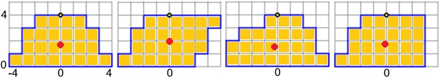 y: 4, 3, 3, 1, 1, 0, 0,1,1,3,3,4, 4
