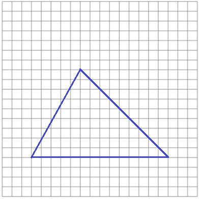 | Traccia le tre perpendicolari innalzate nei punti medi dei lati di questo triangolo, rappresentato a fianco in forma ridotta. Che cosa puoi osservare? |