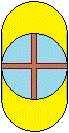 | Al pittore che sta pitturando le pareti interne di una chiesa viene chiesto di decorare una finestra circolare tracciando due segmenti verticali tangenti al cerchio lunghi quanto il diametro e, a partire da questi, due semicerchi, nel modo raffigurato a lato. Gli viene richiesto di ricoprire di uno strato d'oro la superficie tra queste linee e la finestra. La finestra ha diametro di 1 metro. Quanto è estesa questa superficie? | ![]() |