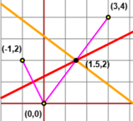 Trova un punto equidistante dai tre punti (0,0), (3,4) e (-1,2).