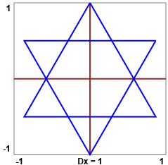Come è ottenibile la figura con questo script, come unione di due triangoli equilateri (ovvero, poligoni regolari di 3 lati), uno con un vertice nella direzione di 90°, l'altro con un vertice nella direzione di (90+180)°: