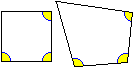 | D: se x, y, z, w sono le ampiezze in gradi degli angoli, si ha x+y+z+w=360; solo al più tre tra questi valori possono essere maggiori di 90; potrebbero essere anche tutti e quattro uguali a 90 (e quindi è da escludere A). Si pensi, per vedere la cosa intutivamente, in modo non "algebrico", a prendere un quadrato e ad ampliarne tre angoli: vedi figura a lato. | ![]() |