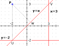 PW ha coefficiente angolare -1, la retta per P con tale coeff. angolare è y=-(x-(-2))+3, l'intersezione
