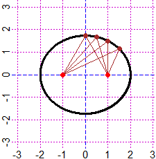 che ha fuochi (q,0) e (-q,0) e somma delle distanze da essi dei suoi punti pari a k.