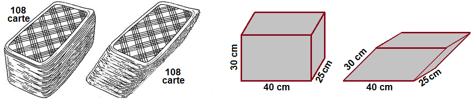 La pila di carte, cosė come la pila di fogli nel disegno qui a destra, se la inclino o la ruoto, non cambia volume. Analogamente due scatole di eguale altezza e con la