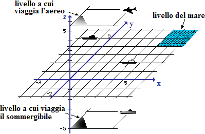 dal livello del mare: asse z. Ad esempio il sommergibile raffigurato,