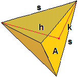 Indichiamo con s la lunghezza dello spigolo. L'area A di una faccia (figura al centro a destra) è l'area di un