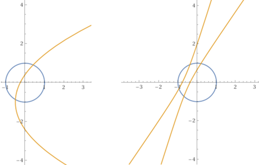 y' = (x+y)/(y−x−q) mandi il cerchio (di centro O e raggio 1)