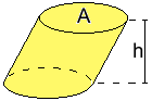 un recipiente si usano cubetti di lato 1 mm (i cosiddetti mm³), cubetti di lato 1 cm (i cosiddetti cm³), cubi di lato 1 m (i cosidetti m³), ... La nostra scatola occupa lo spazio di 36×21×22 mm³. Si dice che ha il volume di 36×21×22 = 16632 mm³. Come si cede dal disegno, i cubo di lato 1 cm contiene 10×10×10 = 1000 cubetti di lato 1 mm. Quindi 1 cm³ = 1000 mm³. Possiamo allora anche dire che la nostra scatola ha il volume di 16.632 cm³, ossia di quasi 17cm³. Così come se inclino un rettangolo l'area del parallelogramma ottenuto posso calcolarla sempre facendo base·altezza, analogamente il volume di un mazzo di carte non cambia se dalla posizione con tutte le carte disposte esattamemte l'una sull'altra lo sposto inclinandolo: il volume lo posso calcolare in ogni caso moltiplicando l'area di base per l'altezza. Vedi la figura seguente: il volume di questo mazzo di carte è di 116 cm³. |
