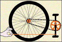 | Una corda è legata al pedale di una bicicletta. Se qualcuno tira indietro la corda (mentre un altro tiene leggermente il sellino per mantenere la bicicletta bilanciata e non lasciarla cadere), questa si muoverą in avanti, indietro o non si muoverą affatto? | ![]() |