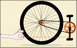 | Una corda è legata al pedale di una bicicletta. Se qualcuno tira indietro la corda (mentre un altro tiene leggermente il sellino per mantenere la bicicletta bilanciata e non lasciarla cadere), questa si muoverà in avanti, indietro o non si muoverà affatto? | ![]() |