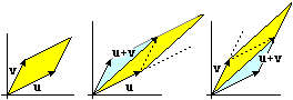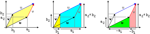 | Se scambio i due vettori l'"area" cambia segno: scambiando due righe o due colonne il determinante cambia segno. Se addiziono un vettore all'altro l'area (vedi figura a lato) non cambia: sommando una riga o una colonna a un'altra il determinante non cambia. | ![]() |