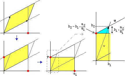 Può essere ottenuta anche trasformando il parallelogramma in modo da renderne i lati paralleli agli assi, ottenendo un rettangolo di dimensioni a1 e b2b1a2/a1, che ha area a1b2b1a2: