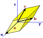 | dove A è l'area del paralleogramma individuato da b e c, che è la "base" del parallelepipedo, mentre a1 ne è l'altezza. |
