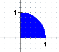 ex+iy = ex (cos(y) + i sin(y)). Questa funzione trasforma i segmenti verticali (x costante) in archi di cerchio centrati nell'origine e aventi raggio ex; quindi il segmento [0,1] dell'asse immaginario viene trasformato in un arco di cerchio di raggio e0 = 1. Si noti che il bordo superiore di A non è un arco di cerchio, come meglio evidenziato nella figura a lato, in cui appare come viene trasformato l'intero cerchio x2+y2 = 1 | ![]() |